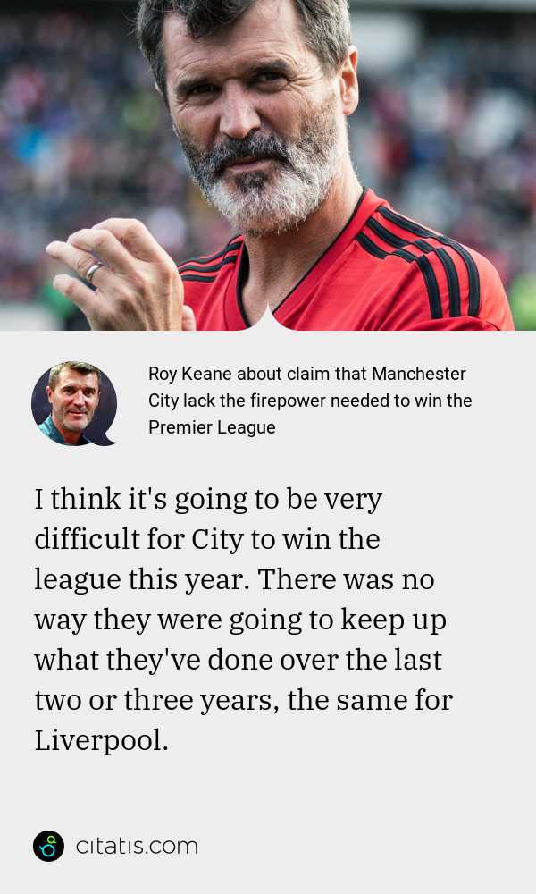 Roy Keane Roy Maurice Keane About Claim That Manchester City Lack The Firepower Needed To Win The Premier League Citatis News from cdn.citatis.com Best manchester city quotes selected by thousands of our users! Leicester city return from the international break to face league leaders manchester city, at the king brendan rodgers spoke to the media ahead of the game and here are some of his key quotes. I want to leave manchester city. Bitter and blue a manchester city community. All information about man city (premier league) current squad with market values transfers rumours player stats fixtures news. Manchester city wall sticker featuring martin tyler.size; Includes man city team interviews, quotes by pepe guardiola, news and blog posts. Explore 355 manchester united quotes by authors including cristiano ronaldo, ole gunnar solskjaer, and tim howard at brainyquote.